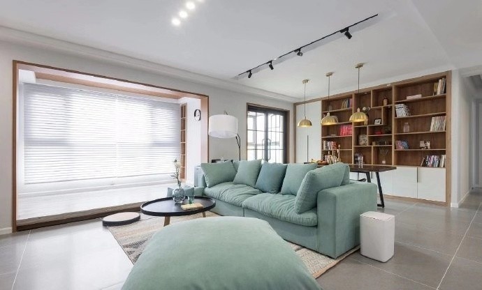 小小的客厅装潢格局特别简约风,客厅墨绿色的沙发给整个客厅都添加的一片新的空间和想象。