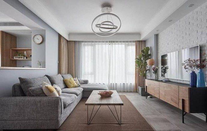 整个客厅的空间布局是很开阔的,书房半墙的设计放大了客厅的一个视觉感,门口的玄关是设计增加了房间的私密性。
