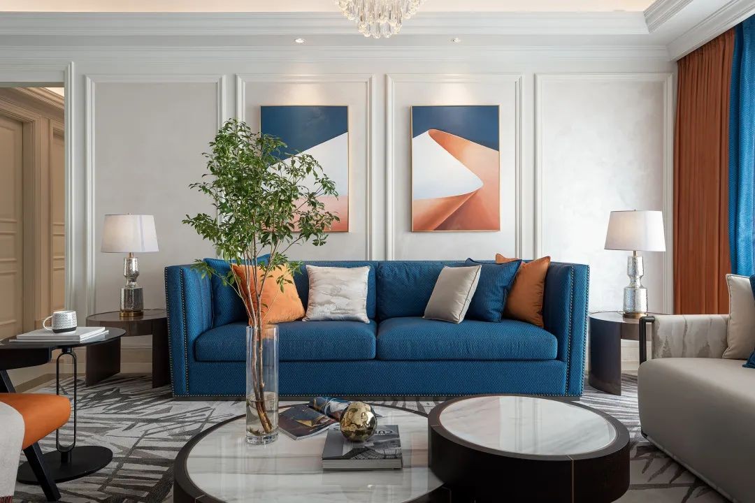 我们尝试以鲜明热烈的色彩与臻选的材质碰撞出全新的空间调性,宝蓝的华美邂逅明快的落日橙,轻奢个性、温暖雅致,让每一个场景生动而鲜活,仿若色彩研想室,让身处其中的人都能感受到色彩所传递的精神与力量。