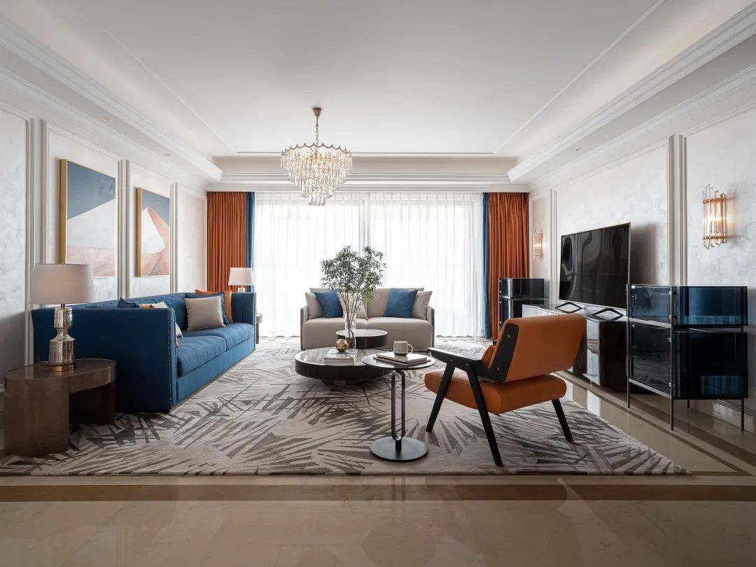 我们尝试以鲜明热烈的色彩与臻选的材质碰撞出全新的空间调性,宝蓝的华美邂逅明快的落日橙,轻奢个性、温暖雅致,让每一个场景生动而鲜活,仿若色彩研想室,让身处其中的人都能感受到色彩所传递的精神与力量。