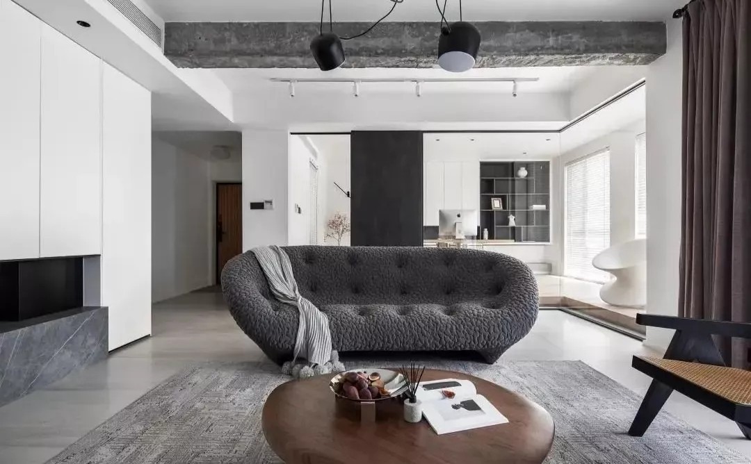 打破传统的侄桍 于色彩本源中萃取出纯粹的白与黑 原木的褐与质感的灰