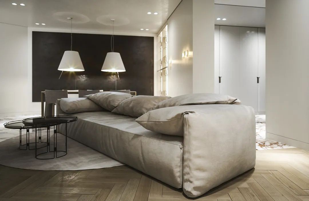 简约的黑白灰色调 与大理石花纹的地砖 共同打造出宜人的居住空间
