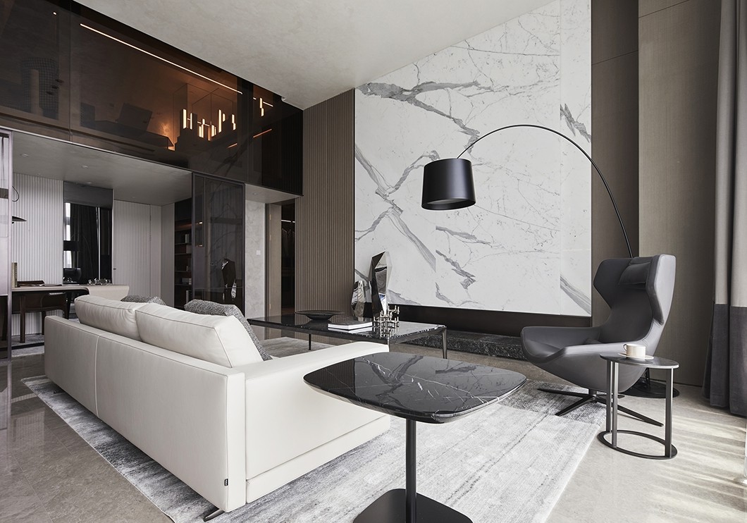 整体简约的现代主义风格令人安怡,沉稳温丽的色调下,线条利落有致,格局清晰,结构性强,空间质感不言而喻。