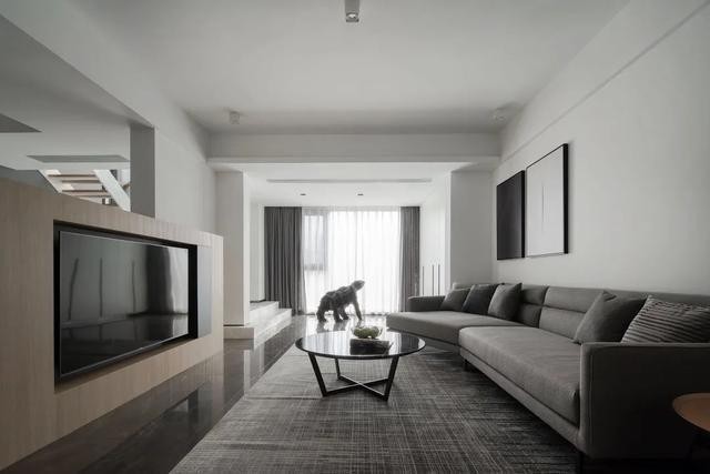在这一套150的复式房屋装修中,以极简的现代风格空间主调,大面积***灰的家具与硬装质感呼应,再以***时尚的石材的质感搭配,为主人呈现出一种低调优雅的华丽与档次氛围。