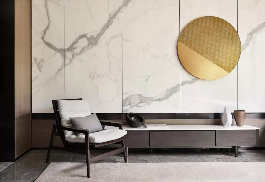 金***术装置在光滑表面与精致纹路的组合下,映衬得大理石背景墙肌理线条清隽而素雅