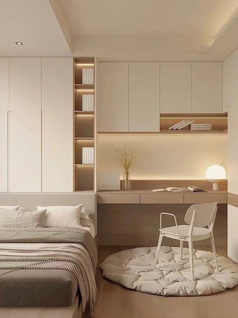 浪漫的奶油风,暖白、奶咖、奶白及浅木色打底来营造低调的优雅感,就像松软可口的奶油蛋糕配上精致优雅的皇冠