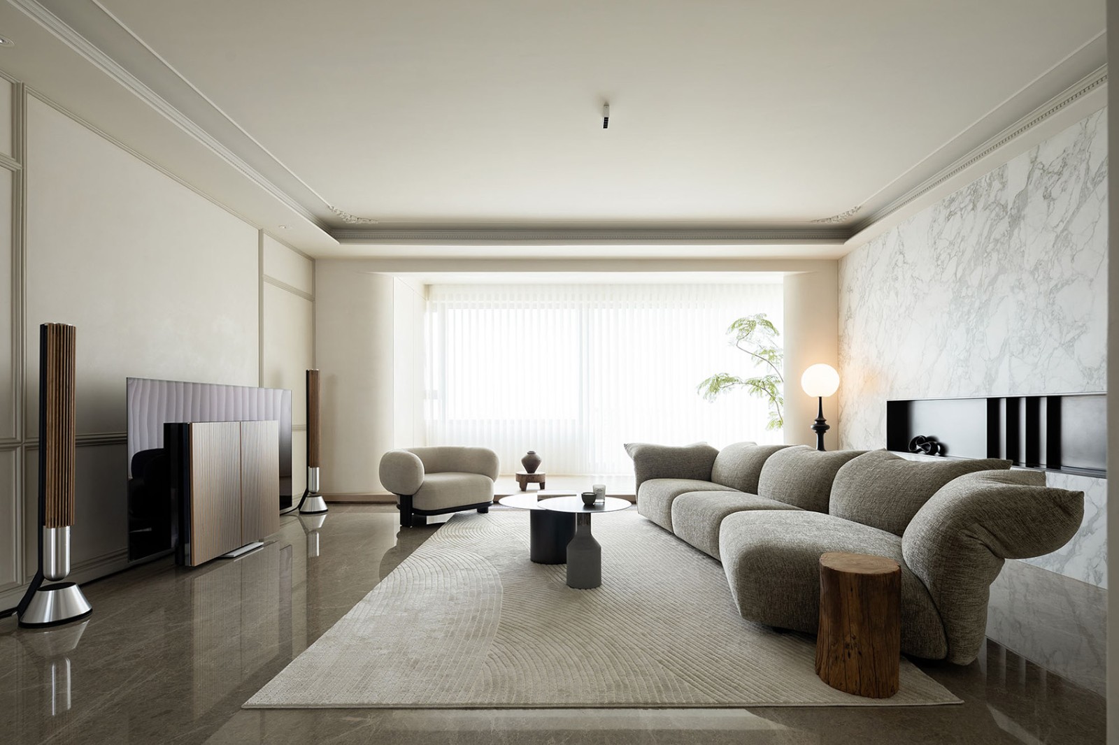这套设计以“古典元素的现代转译、材质肌理的奢华表达、空间叙事的优雅留白”,在新古典与现代的边界上行走,让家成为“可赏可居”的美学藏品,诠释“奢华不是堆砌,而是细节里的精致雕琢”。