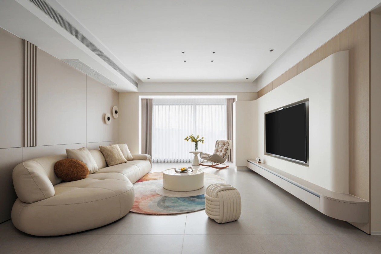 整个空间的奶油色调,简净优雅。空间采光通风良好,营造出自然宜居的生活氛围。